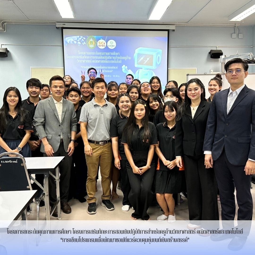 ประมวลภาพกิจกรรมโครงการยกระดับคุณภาพการศึกษา โครงการเสริมทักษะการสอนเชิงปฏิบัติการสำหรับครูด้านวิทยาศาสตร์ คณิตศาสตร์และเทคโนโลยี “การเขียนโปรแกรมเพื่อพัฒนาซอฟต์แวร์ควบคุมหุ่นยนต์เชิงสร้างสรรค์” เมื่อ วันที่ 23-24 มีนาคม 2567 ณ อาคารปฏิบัติการคอมพิวเตอร์ มหาวิทยาลัยราชภัฏนครปฐม วิทยากรผู้ให้ความรู้ อาจารย์จิรภิญญา ศิลปศาสตร์พิริยะ โดยมีผู้ช่วยศาสตราจารย์ ดร.ภานุวัฒน์ ศรีไชยเลิศ และผู้ช่วยศาสตราจารย์ ดร.อุไรวรรณ ศรีไชยเลิศ เป็นอาจารย์หัวหน้าโครงการ