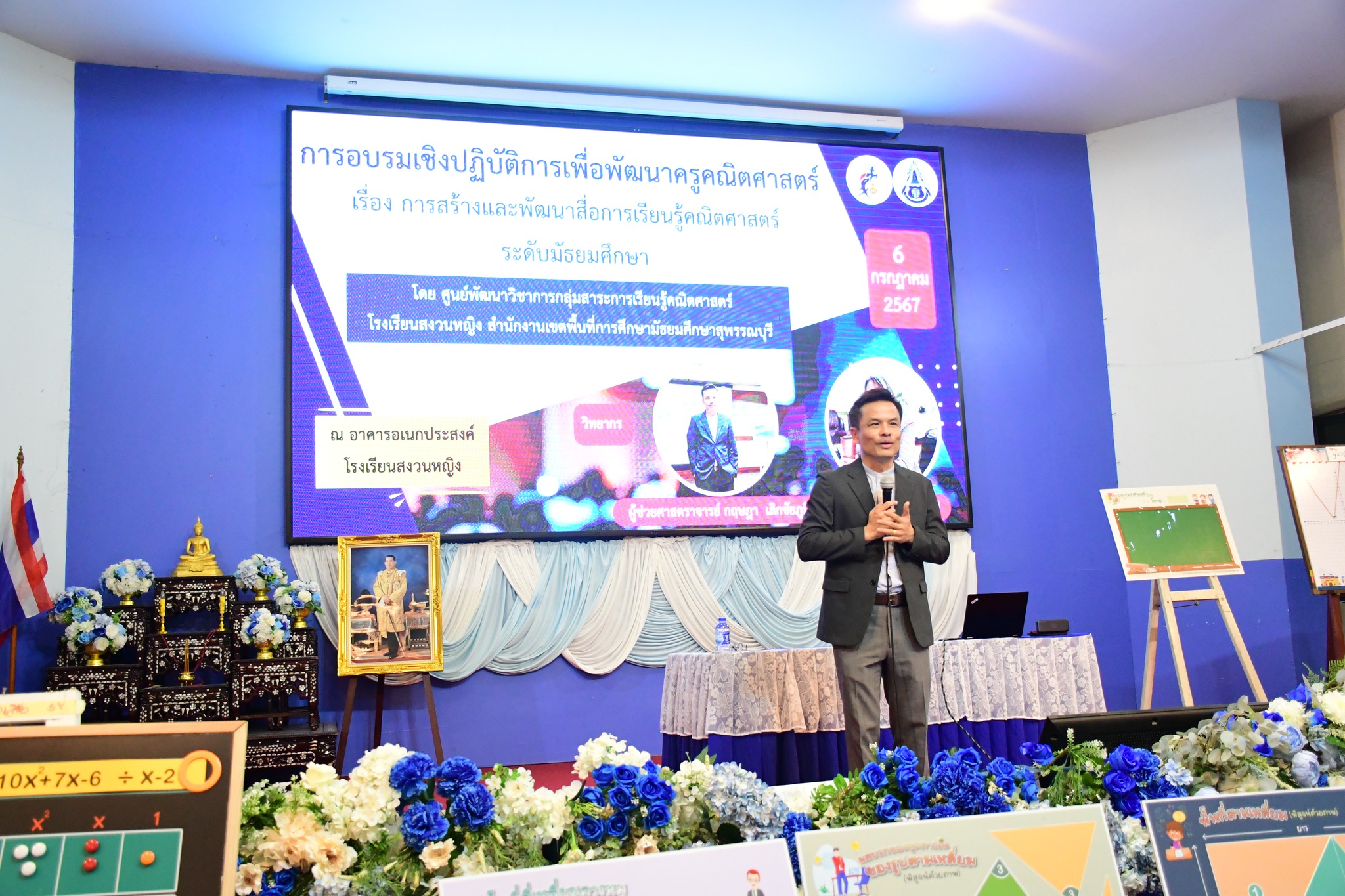 การอบรมเชิงปฏิบัติการเพื่อพัฒนาครูคณิตศาสตร์ เรื่องการสร้างและพัฒนาสื่อการเรียนรู้คณิตศาสตร์ระดับมัธยมศึกษา โดยศูนย์พัฒนาวิชาการกลุ่มสาระการเรียนรู้คณิตศาสตร์ โรงเรียนสงวนหญิง สำนักงานเขตพื้นที่การศึกษามัธยมศึกษาสุพรรณบุรี ในวันที่ 6 กรกฎาคม 2567