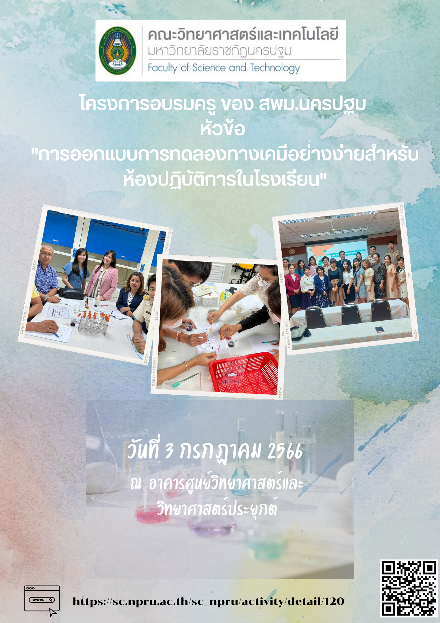 โครงการอบรมครู "การออกแบบการทดลองทางเคมีอย่างง่ายสำหรับห้องปฏิบัติการในโรงเรียน" วันที่ 3 ก.ค.2566