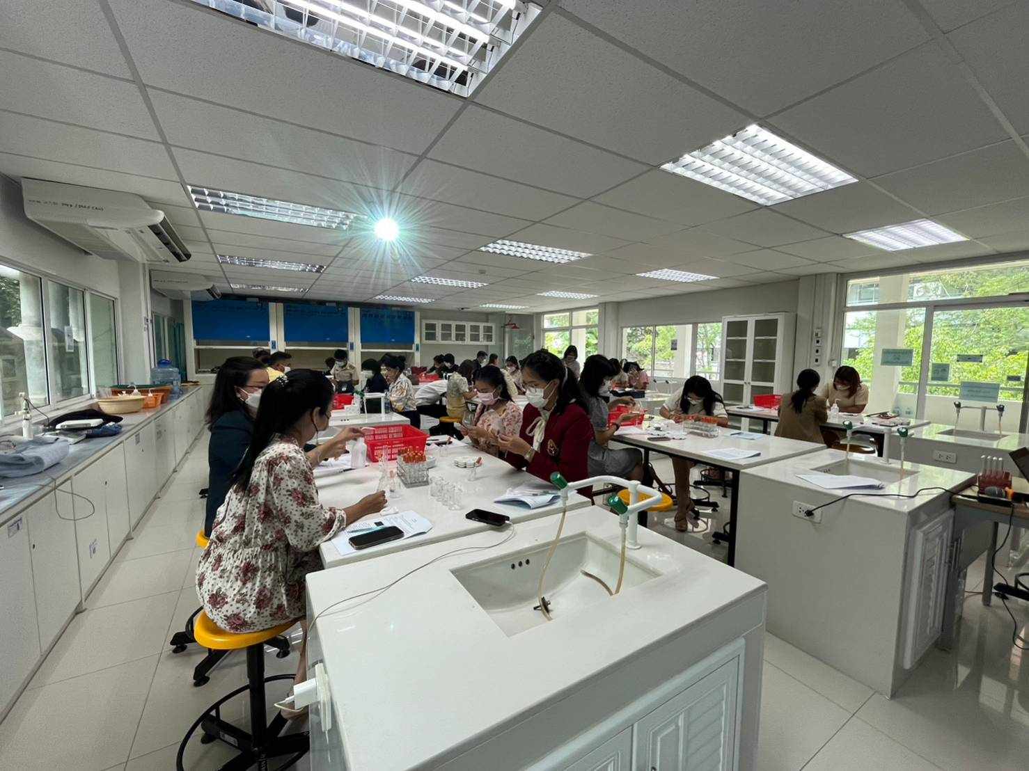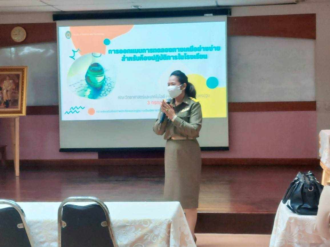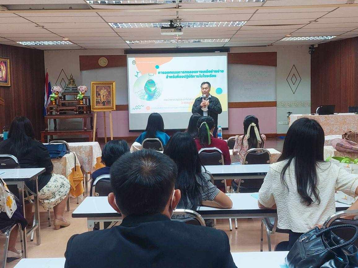 Date 3 Jul 2023 Teacher Training Project of Nakhon Pathom Provincial Education Authority entitled "Design of Simple Chemical Experiments for School Laboratories" at the Center for Science and Applied Sciences Building.