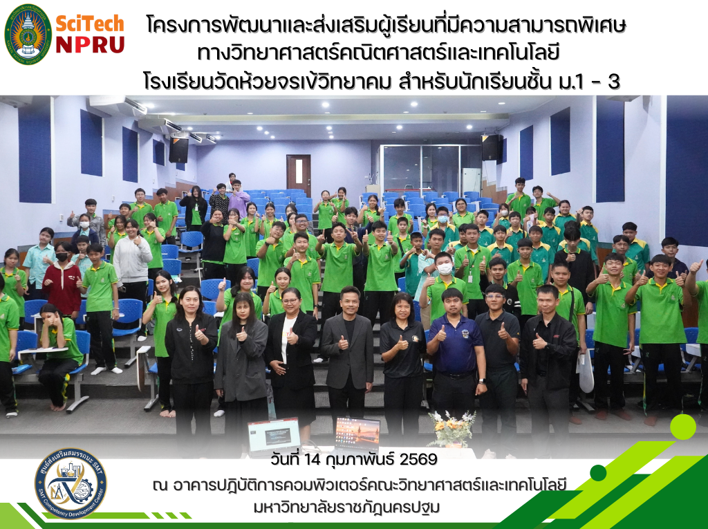 14 ก.พ.69 SMT Center มรภ.นครปฐม เปิดบ้านต้อนรับน้องๆ รร.วัดห้วยจรเข้วิทยาคม ในโครงการพัฒนาและส่งเสริมผู้เรียนที่มีความสามารถพิเศษทางวิทยาศาสตร์ คณิตศาสตร์และเทคโนโลยี