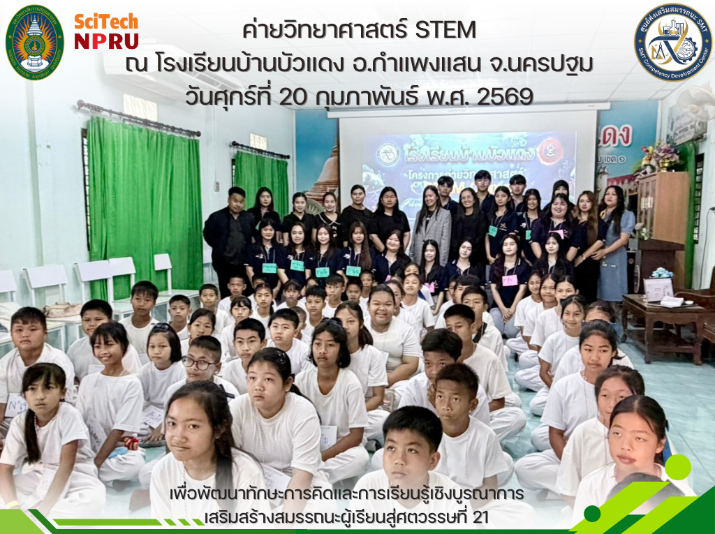 20 ก.พ.69 ค่ายวิทยาศาสตร์ STEM เพื่อพัฒนาทักษะการคิดและการเรียนรู้เชิงบูรณาการเสริมสร้างสมรรถนะผู้เรียนสู่ศตวรรษที่ 21 ณ โรงเรียนบ้านบัวแดง อ.กำแพงแสน จ.นครปฐม
