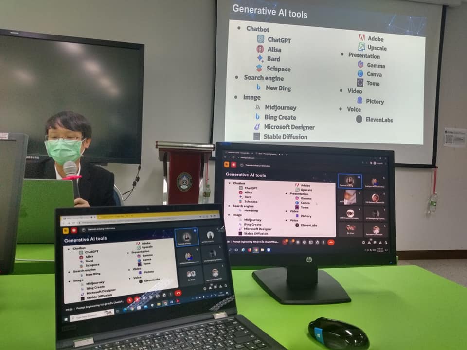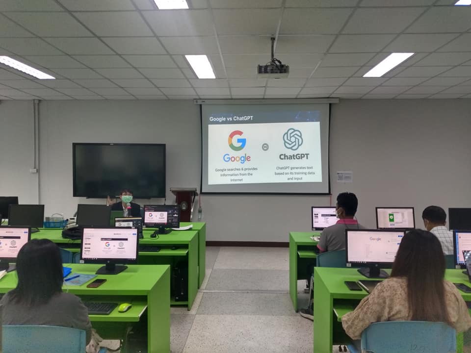 โครงการพัฒนาความสามารถด้านไอทีสำหรับบุคลากร คณะวิทยาศาสตร์และเทคโนโลยี หลักสูตร Prompt Engineering 101 สู่การเป็น ChatGPT Expert วันจันทร์ที่ 24 ก.ค. 2566 วิทยากร ผศ.ดร.ธรรณพ อารีพรรค รองผู้อำนวยการศูนย์บริการทางวิชาการ มหาวิทยาลัยรังสิต และผู้เชี่ยวชาญด้านเทคโนโลยีปัญญาประดิษฐ์