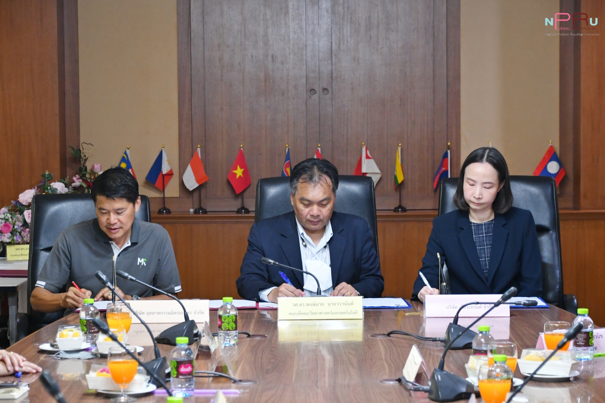 หน่วยสหกิจศึกษาคณะวิทยาศาสตร์และเทคโนโลยี มหาวิทยาลัยราชภัฏนครปฐม จัดพิธีลงนามบันทึกข้อตกลงความร่วมมือ (MOU) ในการส่งนักศึกษาเข้ารับการฝึกประสบการณ์วิชาชีพ / ฝึกปฏิบัติงานวิชาชีพ / สหกิจศึกษา ระหว่างมหาวิทยาลัยราชภัฏนครปฐม โดย รองศาสตราจารย์ ดร.พงษ์นาถ นาถวรานันต์ คณบดีคณะวิทยาศาสตร์และเทคโนโลยี กับ บริษัท อุตสาหกรรมมิตรเกษตร จำกัด โดย นายปรัชญา ผ่องใส ผู้อำนวยการโรงงาน และ บริษัท เยียระกานต์ จำกัด โดย นางสาวมัลลิกา สุธีรวิทยวนิช กรรมการบริษัท ในวันที่ 18 ตุลาคม 2566 ณ ห้องประชุม SC108 คณะวิทยาศาสตร์และเทคโนโลยี มหาวิทยาลัยราชภัฏนครปฐม