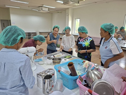 เมื่อวันที่ 15 กรกฎาคม 2568 ศูนย์การเรียนรู้เศรษฐกิจพอเพียง คณะวิทยาศาสตร์และเทคโนโลยี มหาวิทยาลัยราชภัฏนครปฐม ได้จัดโครงการยุทธศาสตร์มหาวิทยาลัยราชภัฏเพื่อการพัฒนาท้องถิ่น ปีงบประมาณ 2568 กิจกรรมอบรม/ถ่ายทอดองค์ความรู้แก่ประชาชนในชุมชน โดยบูรณาการองค์ความรู้และนวัตกรรมร่วมกับชุมชนด้านการแปรรูปอาหาร โดยมีทีมวิทยากรจากสาขาวิชาวิทยาศาสตร์และเทคโนโลยีการอาหาร และคุณ สุดารัตน์ จีรชัยมงคล อบรมให้ความรู้เกี่ยวกับการแปรรูปผลิตภัณฑ์อาหาร น้ำวุ้นผำใบเตยและบราวนี่ชาเขียวแก่ประชาชนในชุมชน ณ ชั้น 1 อาคารพัฒนานวัตกรรมการเกษตร ศูนย์เรียนรู้เศรษฐกิจพอเพียง มหาวิทยาลัยราชภัฏนครปฐม