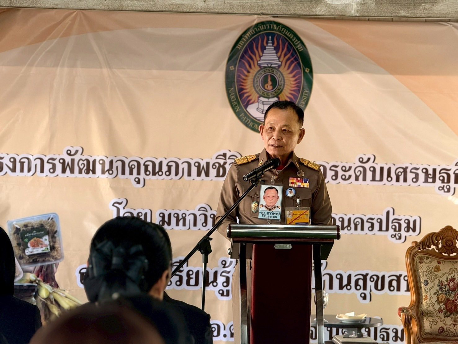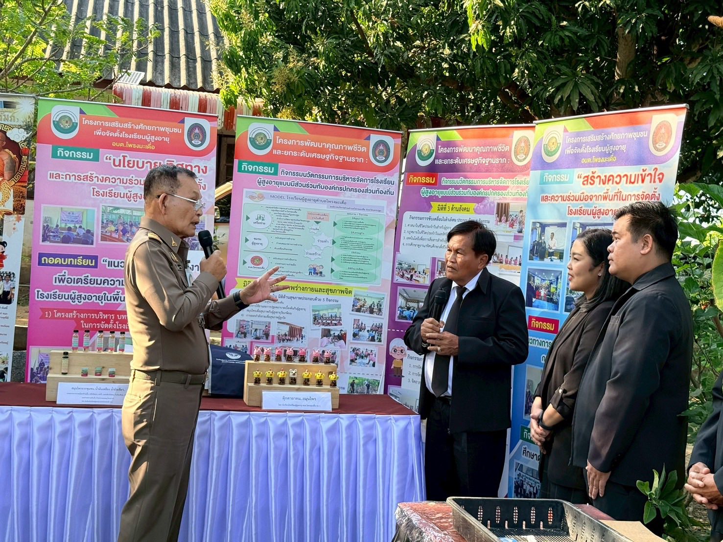 ทางสาขาวิชาสาธารณสุขศาสตร์ นำโดย ผอ. เชาวลิต ศรีโพธิ์ช้าง (ผอ.รร.ผู้สูงอายุ) และ รศ.ดร.ภารณี นิลกรณ์ อาจารย์สาขาสาธารณสุขศาสตร์ พร้อมทีมนักศึกษา และนายสุทธิพล นันทผาสข (หัวหน้าสำนักปลัด) นำเสนอรายงานผลการดำเนินงานต่อท่านพลเอกดาว์พงษ์ รัตนสุวรรณ องคมนตรี ที่มาตรวจเยี่ยมการดำเนินงานตามยุทธศาสตร์มหาวิทยาลัยราชภัฏเพื่อการพัฒนาท้องถิ่น ประจำปี 2568 ณ มหาวิทยาลัยราชภัฏนครปฐม “มิติการพัฒนาสังคม ภายใต้การดำเนินงาน โรงเรียนผู้สูงอายุ อบต.โพรงมะเดื่อ จ.นครปฐม“