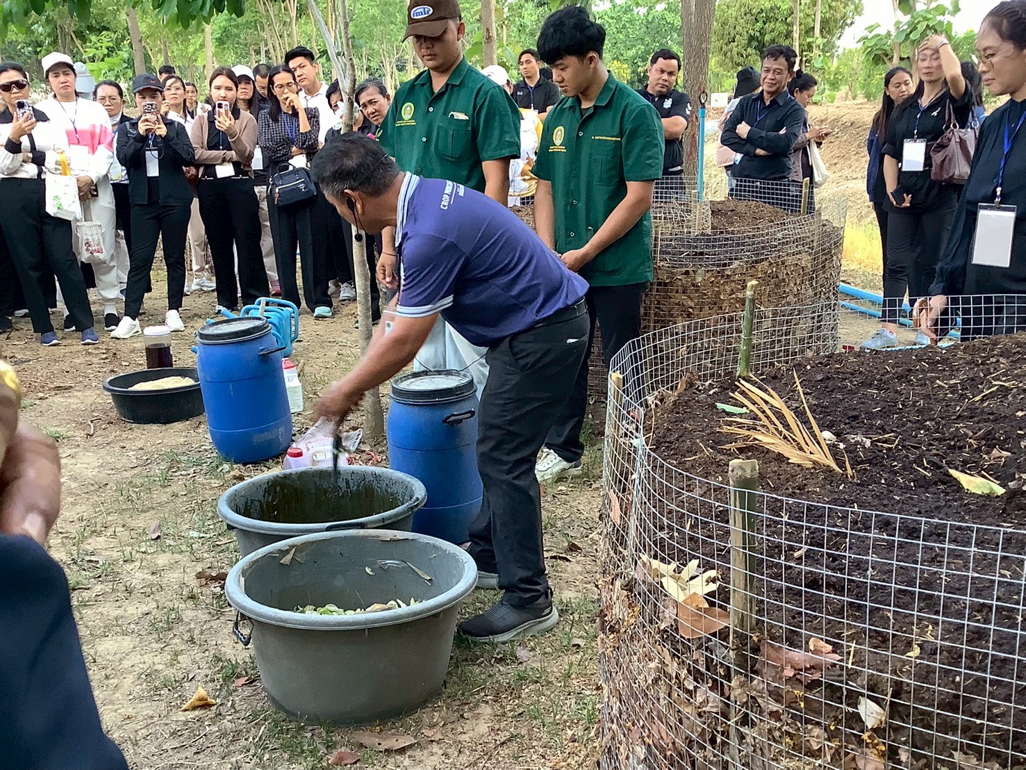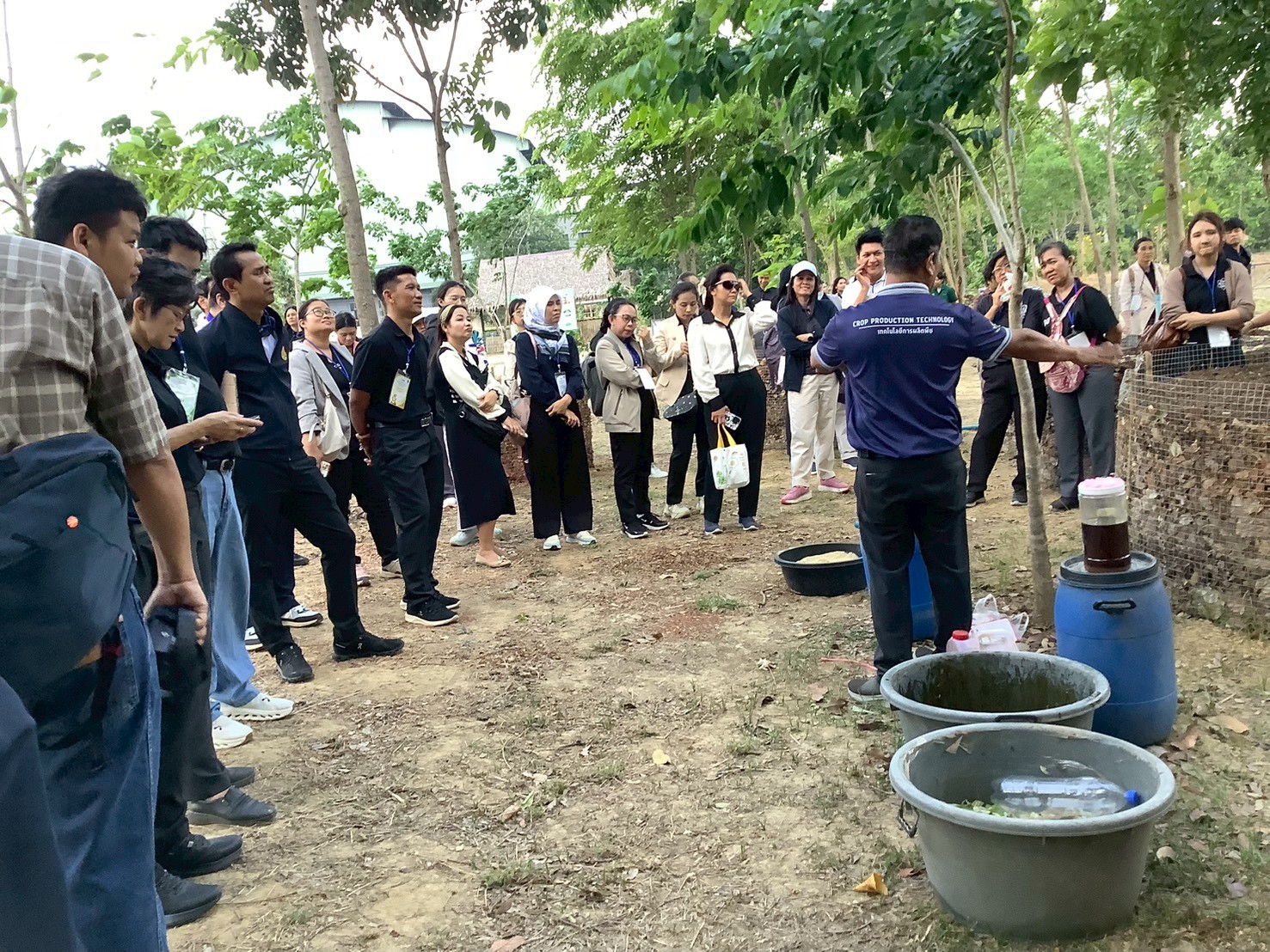 การศึกษาดูงานดังกล่าวเป็นส่วนหนึ่งของกิจกรรมสร้างการมีส่วนร่วมในการขับเคลื่อนโครงการปลูกฝังทัศนคติด้านพลังงานและสิ่งแวดล้อมแก่เยาวชน ประจำปี 2569 รุ่นที่ 2 โดยมี ผู้ช่วยศาสตราจารย์ ดร.พิทักษ์พงศ์ ป้อมปราณี ผู้ปฏิบัติหน้าที่หัวหน้างานศูนย์เรียนรู้เศรษฐกิจพอเพียง เป็นวิทยากรให้ความรู้ ในโซนพื้นที่การเรียนรู้การผลิตพืชแบบคาร์บอนต่ำ (Low-Carbon Agriculture) ทั้งนี้ เนื้อหาการเรียนรู้มุ่งเน้นการลดการปล่อยก๊าซเรือนกระจก ได้แก่ คาร์บอนไดออกไซต์ (CO₂) มีเทน (CH₄) และไนตรัสออกไซด์ (N₂O) ผ่านฐานการเรียนรู้ที่หลากหลาย อาทิ การใช้พลังงานสะอาดในระบบการให้น้ำพืช การจัดการเศษวัสดุทางการเกษตร การปรุงดิน การจัดการน้ำและดิน การปลูกพืชแบบลดการไถพรวนด้วยเทคนิคการบ่มดินเพื่อลดการปล่อยคาร์บอนในดิน รวมถึงการเพิ่มศักยภาพการกักเก็บคาร์บอนด้วยการปลูกพืชสมุนไพรแซมใต้ร่มเงาไม้ยืนต้น