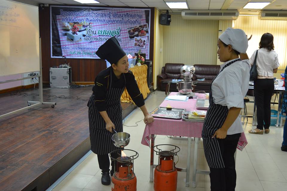 โครงการเสริมสร้างความรู้ พัฒนาศักยภาพแก่นักศึกษา ศิษย์เก่าและบุคลากรในท้องถิ่นด้านเบเกอรี่เพื่อประกอบอาชีพ โดย วิทยากร ดร.ธีรนุช ฉายศิริโชติ และคณะ