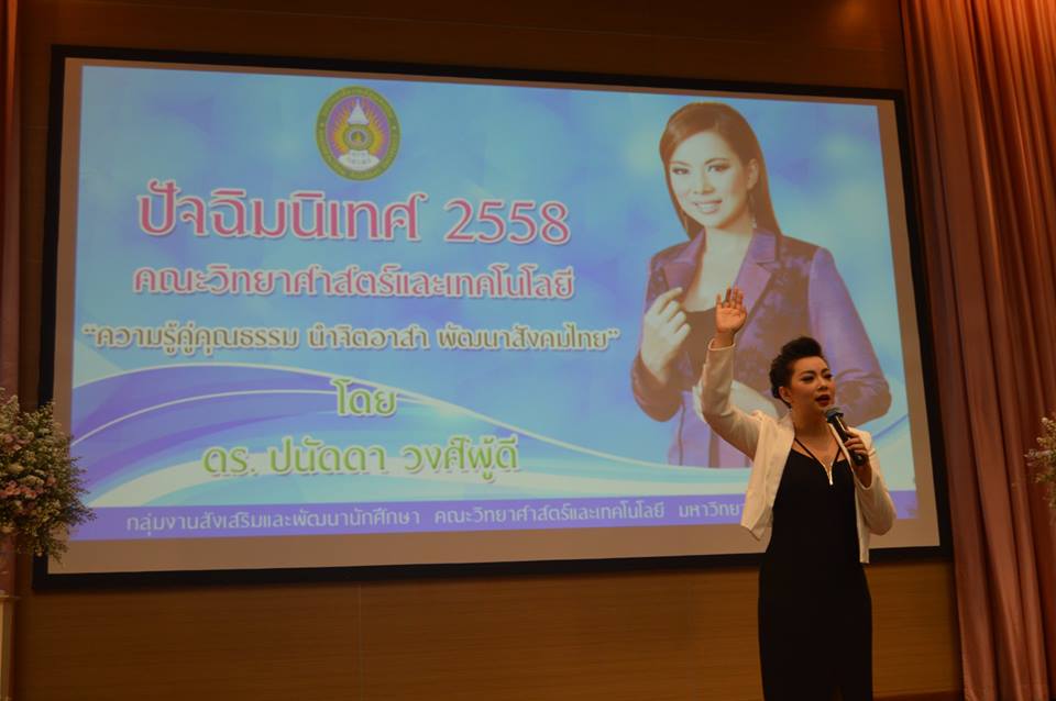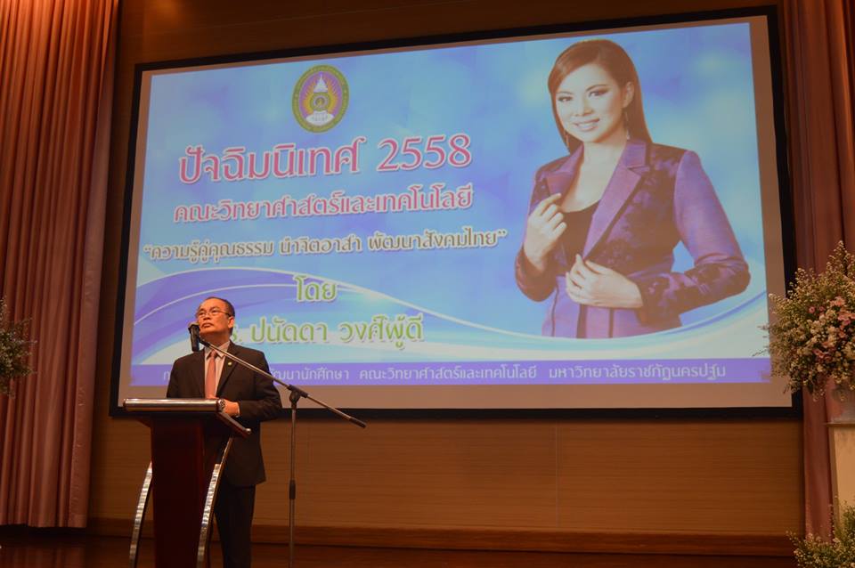 ปัจฉิมนิเทศ 2558 คณะวิทยาศาสตร์และเทคโนโลยี "ความรู้คู่คุณธรรม นำจิตอาสา พัฒนาสังคมไทย" โดย วิทยากร ดร.ปนัดดา วงศ์ผู้ดี