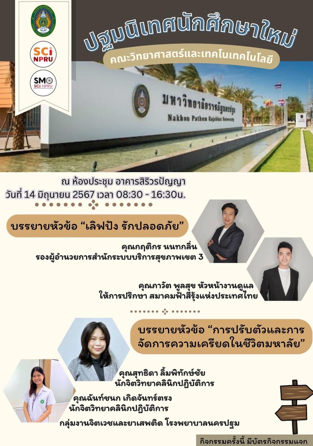 #ประชาสัมพันธ์ปฐมนิเทศนักศึกษาใหม่ ปีการศึกษา 2567 คณะวิทยาศาสตร์และเทคโนโลยี มหาวิทยาลัยราชภัฏนครปฐม