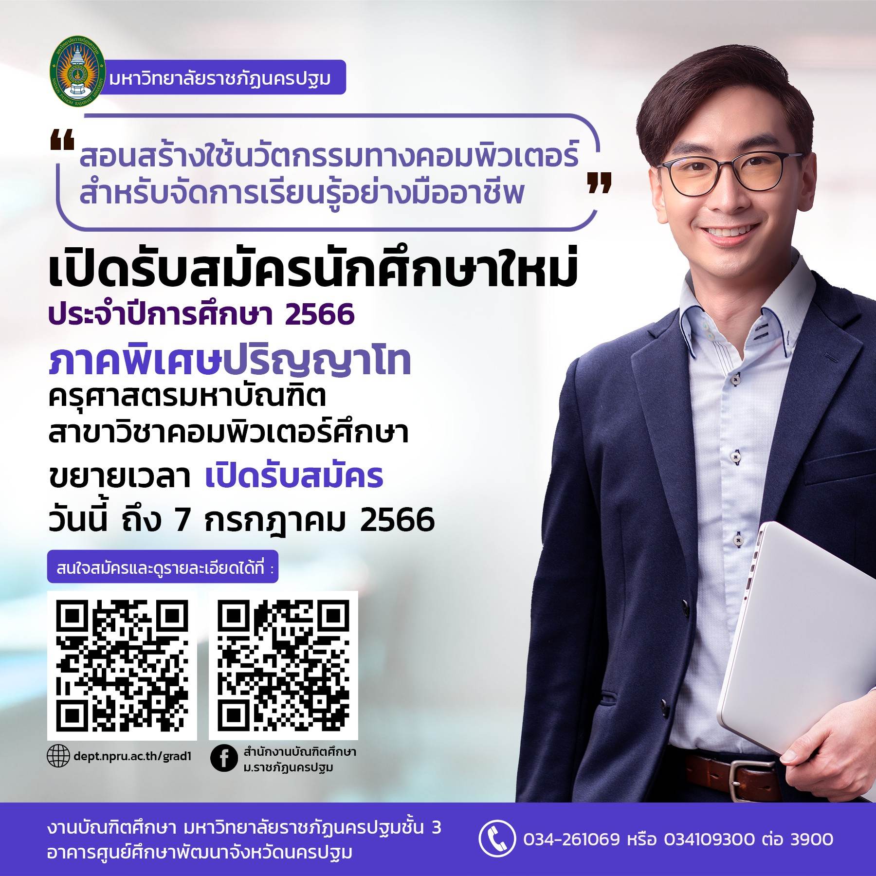 ประกาศฯ ขยายเวลาการรับสมัครนักศึกษาระดับบัณฑิตศึกษา (ภาคพิเศษ) ประจำภาคเรียนที่ 1 ปีการศึกษา 2566 ได้ที่เว็บไซต์งานบัณฑิตศึกษา http://dept.npru.ac.th/grad1/ หรือ สมัครออนไลน์ http://reg2.npru.ac.th/registrar/apphome.asp