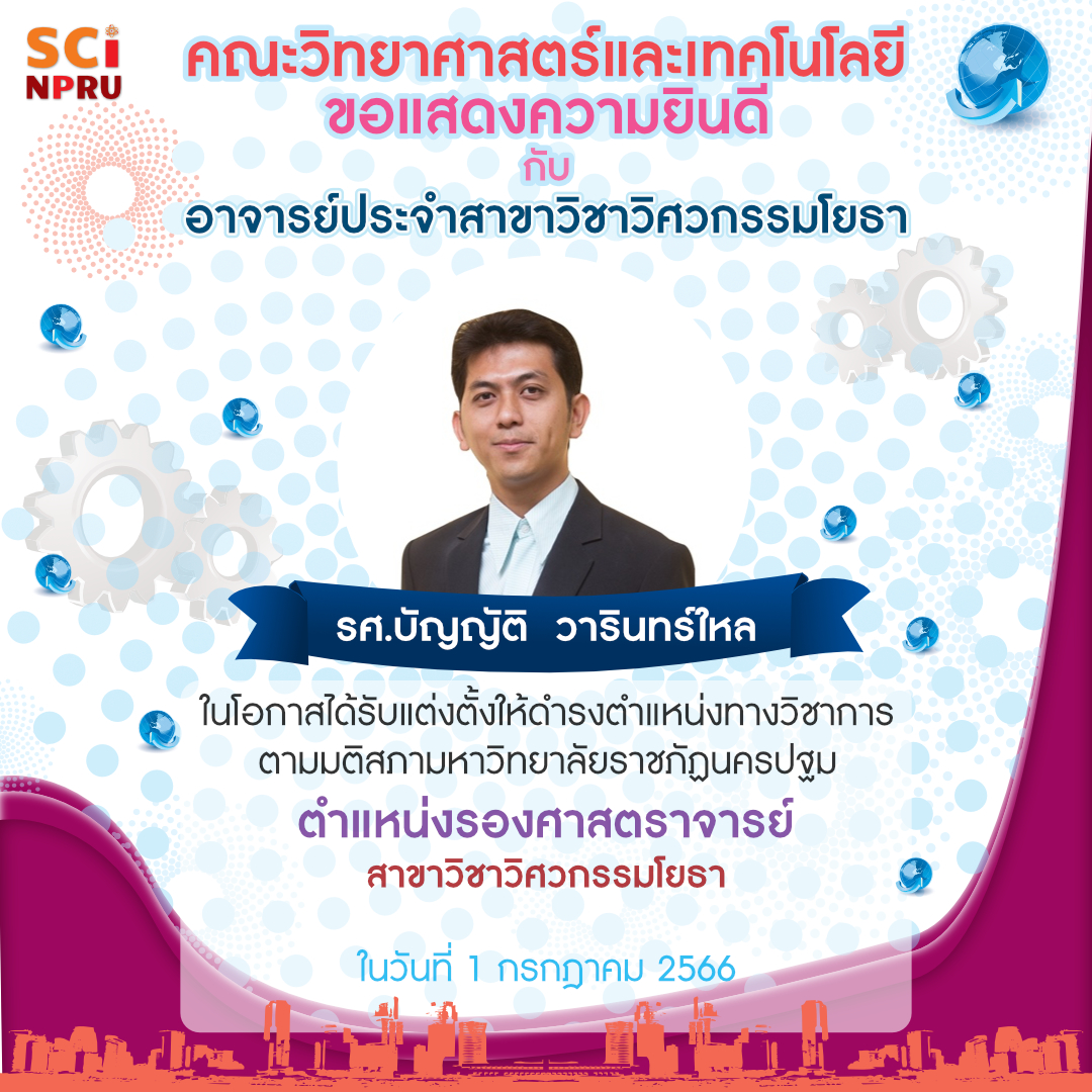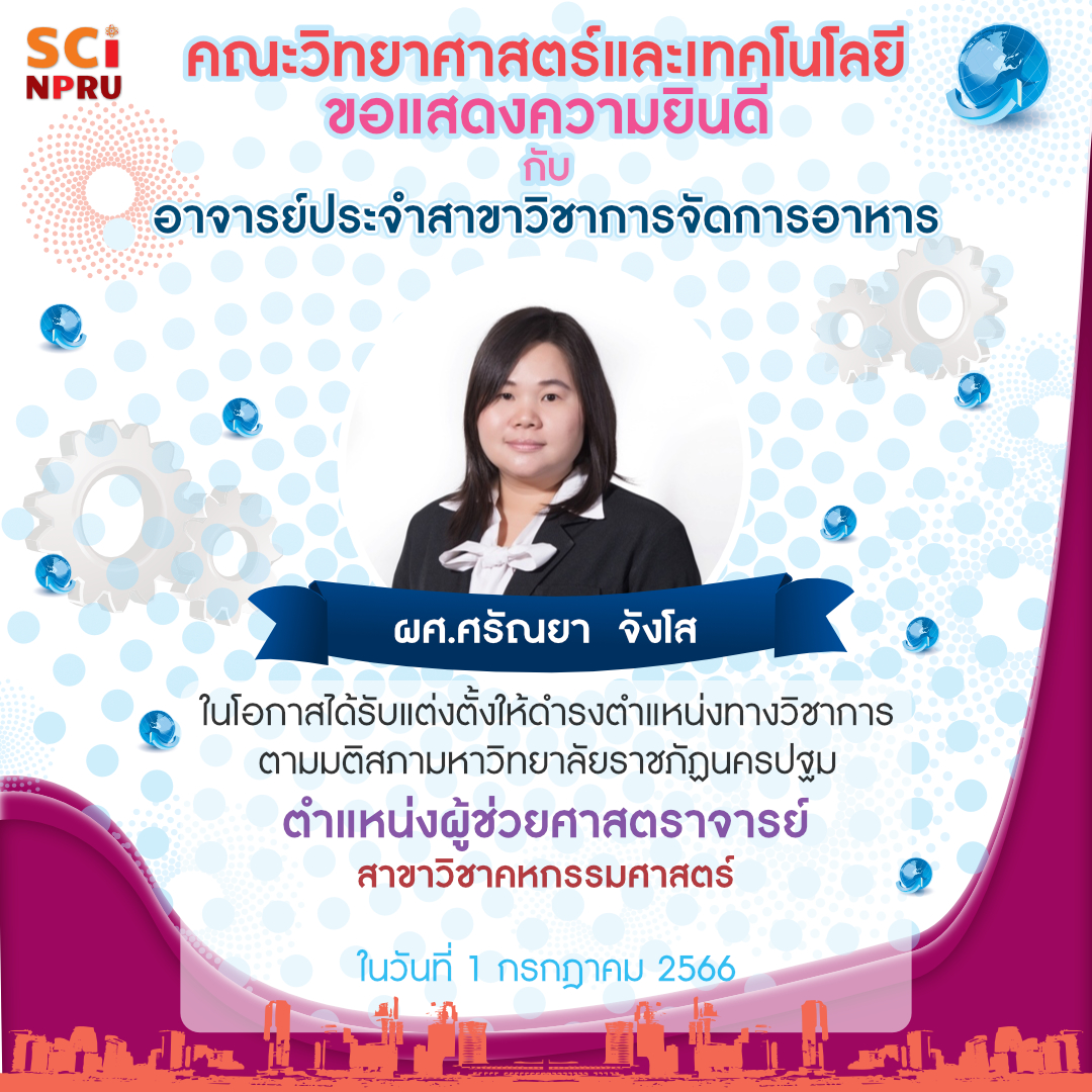 คณะวิทยาศาสตร์และเทคโนโลยี ขอแสดงความยินดีกับผู้ที่ได้รับตำแหน่งทางวิชาการ