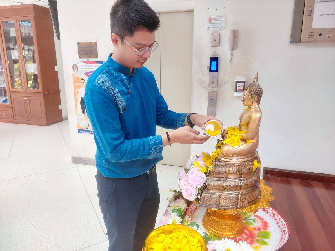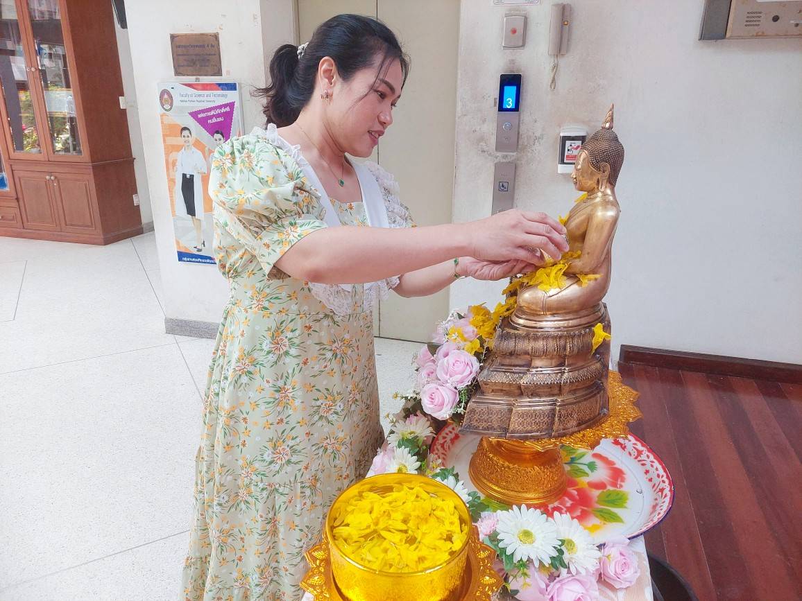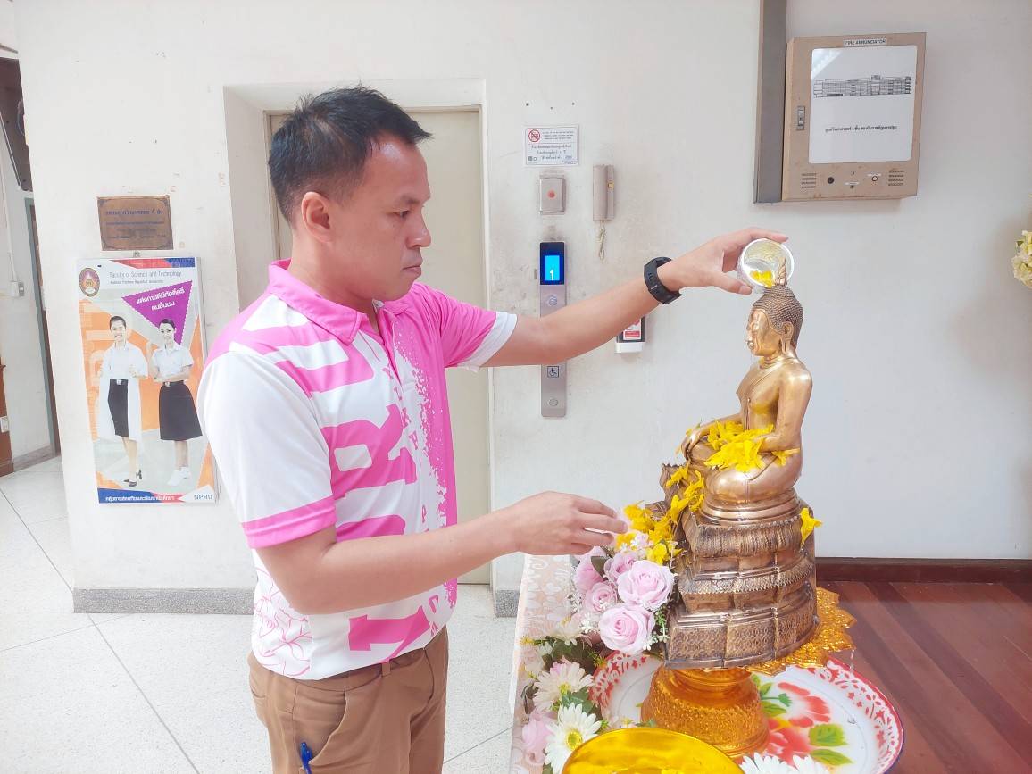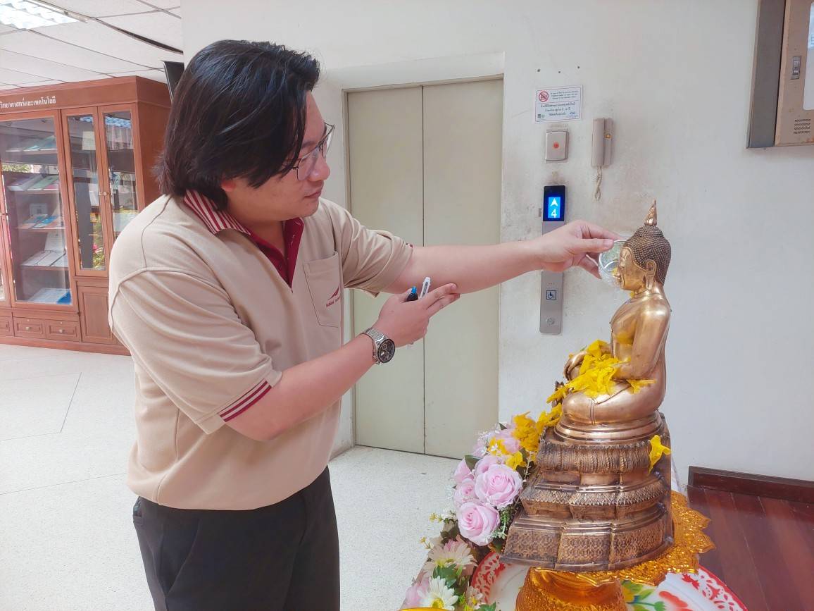คณะวิทยาศาสตร์และเทคโนโลยี จัดพิธีสรงน้ำพระ (หลวงพ่อวัดไร่ขิง) เพื่อความเป็นสิริมงคลแก่อาจารย์ เจ้าหน้าที่ และนักศึกษา เนื่องในโอกาสเทศกาลสงกรานต์